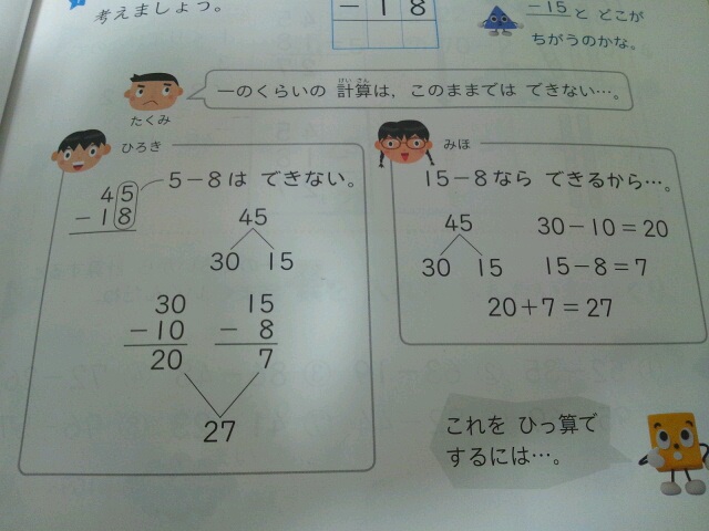 さくらんぼ計算といい、子供が迷ってしまいそうな計算方法や。